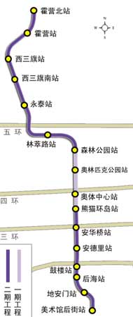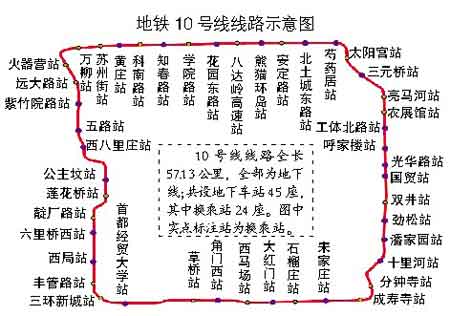 據(jù)悉,將要開通試運(yùn)營(yíng)的三條地鐵線路中,地鐵奧運(yùn)支線(8號(hào)線一部分)全長(zhǎng)5.9公里,設(shè)4座車站,連接了奧林匹克中心場(chǎng)館區(qū)和森林公園,是直接服務(wù)北京奧運(yùn)會(huì)的軌道交通線路;地鐵10號(hào)線全長(zhǎng)24.6公里,設(shè)22座車站,呈倒“L”形,是和奧運(yùn)支線相連接的橫跨京城北部、縱貫北京東部地區(qū)的一條軌道交通線;地鐵機(jī)場(chǎng)線全長(zhǎng)28.1公里,設(shè)4座車站,將首都機(jī)場(chǎng)和城市中心區(qū)相連接,是服務(wù)航空旅客的重要客運(yùn)軌道交通專線。