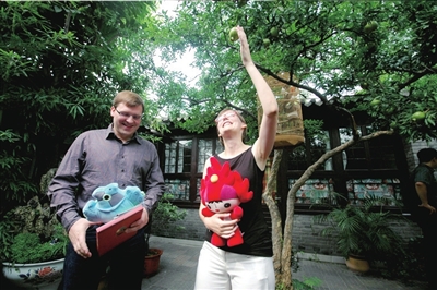 昨天(30日),西城區(qū)旅游局為德國(guó)夫婦皮特和西蒙娜舉行了簡(jiǎn)短的歡迎儀式,并向他們贈(zèng)送奧運(yùn)福娃和胡同游覽地圖。這對(duì)年輕的德國(guó)夫婦是本市首批入住奧運(yùn)人家的外國(guó)游客。他們將在奧運(yùn)人家居住五天,然后返回上海工作。