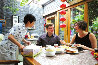 “Do you wantsometea?”王志熹一邊和記者聊天,一邊不忘為西蒙娜服務(wù)。為接待外國(guó)游客,她和丈夫荊繼昌專門請(qǐng)了老師學(xué)習(xí)英語,現(xiàn)在已基本能用英語和外國(guó)人交流了。