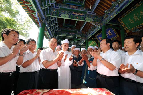 17日上午,溫家寶專程來(lái)到具有悠久歷史的銀川納家戶清真寺,看望宗教人士和回族群眾,并和他們親切交談。