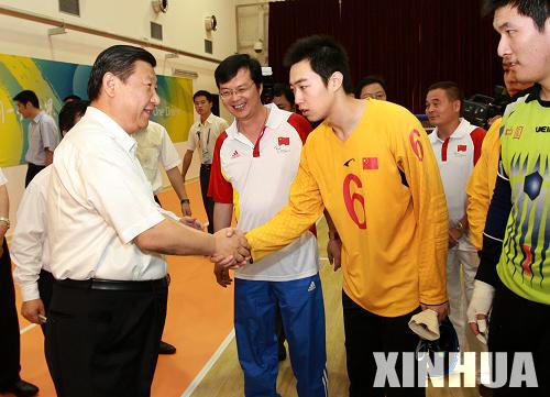 這是習(xí)近平在北京理工大學(xué)體育館看望正在訓(xùn)練的盲人門球運(yùn)動員。新華社記者龐興雷攝