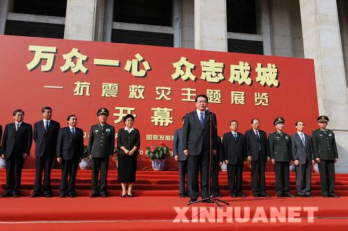 9月20日,“萬眾一心 眾志成城——抗震救災(zāi)主題展覽”在北京中國人民革命軍事博物館隆重開幕。中共中央政治局常委李長春出席開幕式并宣布展覽開幕。新華社記者 饒愛民 攝