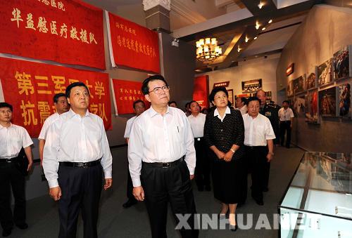 9月20日,“萬眾一心 眾志成城——抗震救災(zāi)主題展覽”在北京中國人民革命軍事博物館隆重開幕。中共中央政治局常委李長春出席開幕式并宣布展覽開幕。這是李長春等在開幕式后參觀展覽。新華社記者 饒愛民 攝