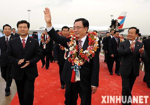 9月22日,以中共中央政治局常委、中央紀委書記賀國強為團長的中央代表團乘專機抵達銀川,參加寧夏回族自治區(qū)成立50周年慶;顒印P氯A社記者 高潔 攝