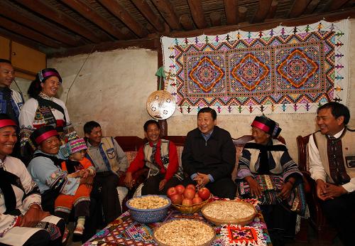 習(xí)近平深入城鄉(xiāng)居民家中了解群眾生產(chǎn)生活情況。在去年6月3日寧洱地震災(zāi)區(qū)的同心鄉(xiāng)那柯里村,習(xí)近平仔細(xì)了解受災(zāi)群眾住房重建、小孩上學(xué)等情況。這個(gè)村在災(zāi)后不等不靠,充分發(fā)揮廣大黨員的先鋒模范作用,堅(jiān)持自力更生、艱苦奮斗,把災(zāi)后恢復(fù)重建與新農(nóng)村建設(shè)相結(jié)合、與發(fā)展旅游文化產(chǎn)業(yè)相結(jié)合,村民生產(chǎn)生活基本恢復(fù)正常。他了解到這些情況后十分高興,強(qiáng)調(diào)要高度重視災(zāi)區(qū)群眾安全過冬問題,進(jìn)一步采取有力措施確保災(zāi)區(qū)群眾有口糧吃、有衣服穿、有棉被蓋。在昆明市桃源社區(qū)低收入困難群眾家里,他詳細(xì)詢問生活情況,叮囑當(dāng)?shù)馗刹恳M(jìn)一步落實(shí)好低保等政策,幫助困難群眾解決生產(chǎn)生活中的實(shí)際問題。