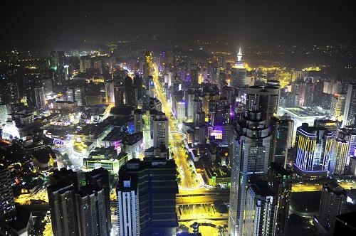 10月11日,華燈初上,高樓林立的深圳市中心車水馬龍,流光溢彩。作為中國(guó)改革開放的總設(shè)計(jì)師鄧小平親自倡導(dǎo)設(shè)立的中國(guó)第一個(gè)經(jīng)濟(jì)特區(qū),深圳一直被看作是中國(guó)改革開放的窗口。從1980年國(guó)家批準(zhǔn)設(shè)立經(jīng)濟(jì)特區(qū)以來,“深圳速度”已經(jīng)成為人們的一個(gè)習(xí)慣用語。在短暫的28年間,深圳從一個(gè)人口只有3萬人的邊陲小漁村發(fā)展到人口過千萬的現(xiàn)代大都市,城區(qū)面積也從最初的3平方公里擴(kuò)大到了700多平方公里,GDP也從1979年的1.79億元增長(zhǎng)到了2007年的6700多億元,創(chuàng)造了世界經(jīng)濟(jì)發(fā)展史上的奇跡。深圳目前已經(jīng)成長(zhǎng)為中國(guó)內(nèi)地經(jīng)濟(jì)最發(fā)達(dá)的城市之一。高新技術(shù)產(chǎn)業(yè)、現(xiàn)代物流業(yè)、金融服務(wù)業(yè)以及文化產(chǎn)業(yè)是其四大支柱產(chǎn)業(yè)。此外,作為中國(guó)主要的外貿(mào)口岸,深圳進(jìn)出口總額連續(xù)10多年位居大中城市第一。2007年,深圳人均GDP達(dá)到10628美元,成為內(nèi)地首個(gè)人均GDP過萬美元的城市。新華社記者 任勇 攝