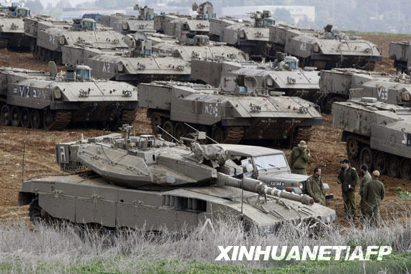 12月29日,以色列的坦克和裝甲車在靠近加沙的邊境地區(qū)集結(jié)。新華社/法新