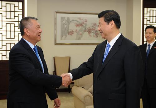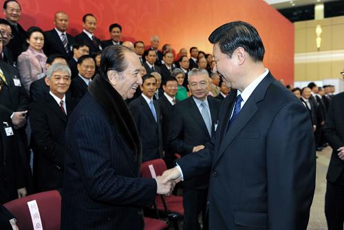 1月10日,國家副主席習(xí)近平在澳門東亞運動會體育館禮堂親切會見澳門社會各界代表人士。這是習(xí)近平和全國政協(xié)常委何鴻燊握手。新華社記者 馬占成攝
