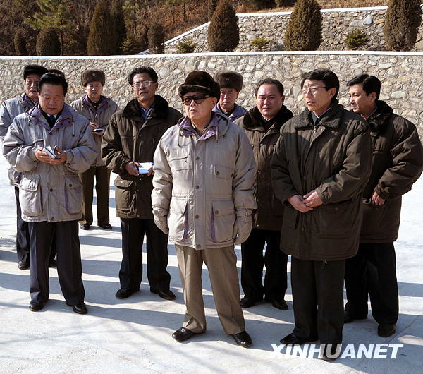 這張朝鮮中央通訊社2月1日提供的照片顯示朝鮮最高領(lǐng)導(dǎo)人金正日(中)視察位于黃海北道的禮成江1號(hào)青年電站。朝鮮《勞動(dòng)新聞》1日?qǐng)?bào)道,金正日于近日視察了禮成江1號(hào)青年電站。新華社/朝中社