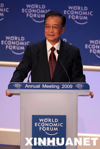 1月28日,中國國務(wù)院總理溫家寶在瑞士達(dá)沃斯世界經(jīng)濟(jì)論壇2009年年會上發(fā)表特別致辭。新華社記者姚大偉攝
