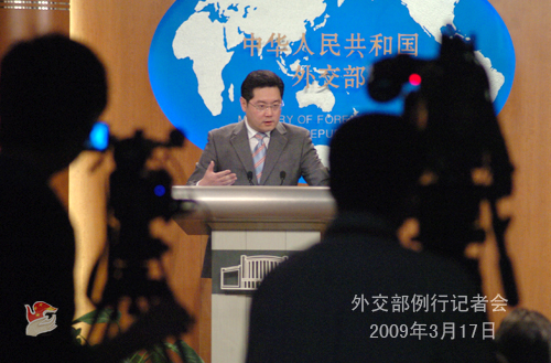 2009年3月17日下午,外交部發(fā)言人秦剛主持例行記者會,就朝鮮總理訪華、六方會談、巴基斯坦政局等回答記者提問。