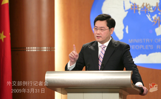2009年3月31日下午,外交部發(fā)言人秦剛舉行例行記者會,就朝鮮半島局勢、中法關系、中印關系、阿富汗問題等答問。