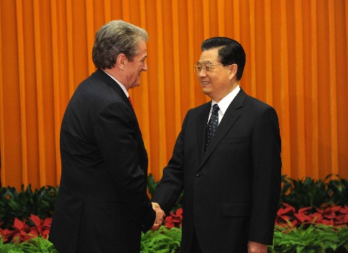 4月20日,國家主席胡錦濤在北京人民大會堂會見來華進行正式訪問的阿爾巴尼亞總理薩利·貝里沙。 新華社記者 李學仁 攝
