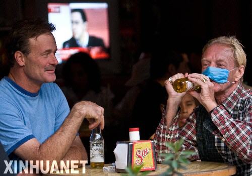 4月25日,在墨西哥首都墨西哥城的繁華地區(qū),游客帶著口罩用餐、飲酒。當(dāng)日,墨西哥政府派遣警力和士兵為墨西哥城市民免費(fèi)分發(fā)600萬只口罩。據(jù)報(bào)道,截至目前,墨西哥已發(fā)現(xiàn)80多人死于流感,其中至少20人確診感染了A/H1N1型豬流感病毒。新華社發(fā)(戴維攝)