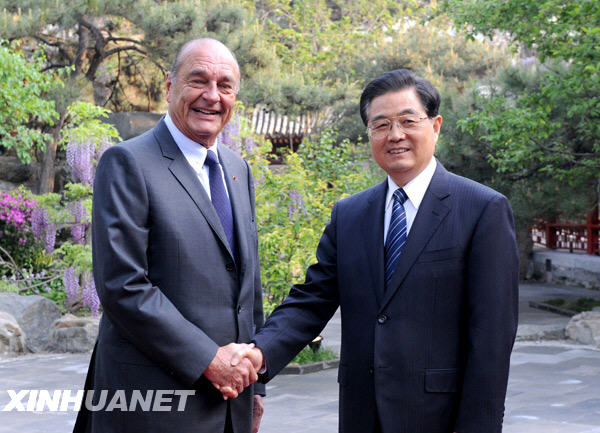 4月28日,國家主席胡錦濤在北京釣魚臺國賓館會見法國前總統(tǒng)希拉克。新華社記者李學(xué)仁攝