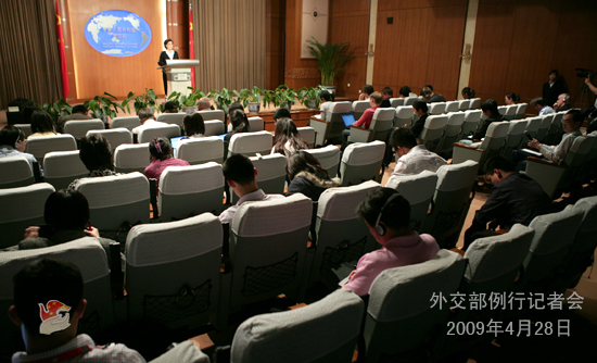 2009年4月28日,外交部發(fā)言人姜瑜舉行例行記者會,主要就中日關(guān)系,中法關(guān)系及外交部就豬流感發(fā)布旅行提醒等答記者問。