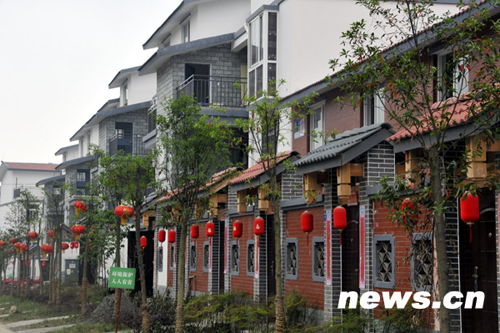 5月7日,都江堰市向峨鄉(xiāng)棋盤村重建的永久性住房安置點(diǎn)。目前,四川地震災(zāi)區(qū)災(zāi)后重建的一批永久性安置住房陸續(xù)竣工,各具特色。不少受災(zāi)群眾喜遷新居。新華網(wǎng) 前衛(wèi) 攝
