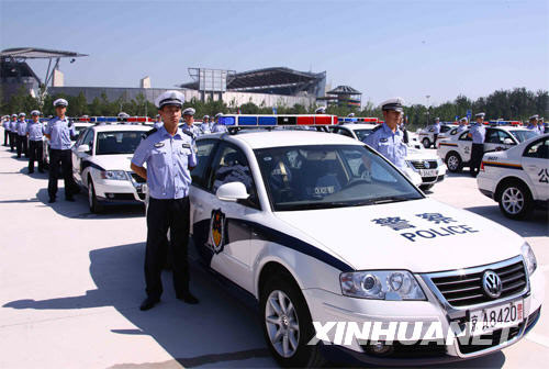 資料圖片:北京交警在奧體中心南門準(zhǔn)備出發(fā)。 新華社記者 陳建力 攝