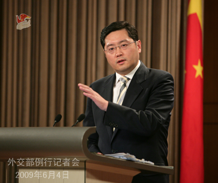 2009年6月4日,外交部發(fā)言人秦剛舉行例行記者會(huì)。答問如下: