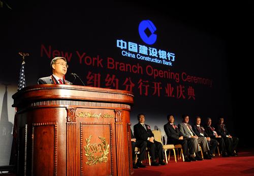 中國(guó)駐紐約總領(lǐng)事彭克玉、紐約市副市長(zhǎng)羅伯特·利伯、紐約州銀行廳廳長(zhǎng)理查德·奈曼、美國(guó)銀行首席執(zhí)行官肯尼思·劉易斯、高盛集團(tuán)首席運(yùn)營(yíng)官加里·科恩、建行副行長(zhǎng)范一飛以及來自美國(guó)社會(huì)各界嘉賓400余人出席了開業(yè)典禮。