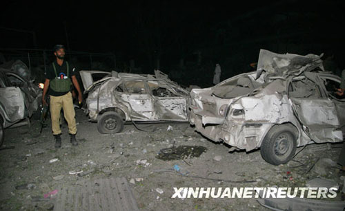 爆炸發(fā)生在保安措施嚴密的珍珠大陸飯店。有目擊者說,爆炸發(fā)生在酒店大堂,炸壞了酒店大堂和一樓。酒店外40多輛汽車被炸毀,其中有掛著聯(lián)合國牌照的車輛。救援人員說,傷者中有外國人。