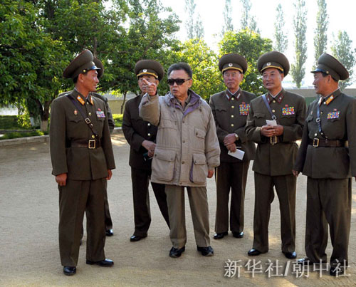 這張朝鮮中央通訊社6月14日播發(fā)的照片顯示,朝鮮最高領(lǐng)導(dǎo)人金正日(中)近日視察人民軍第七步兵師指揮部。新華社/朝中社
