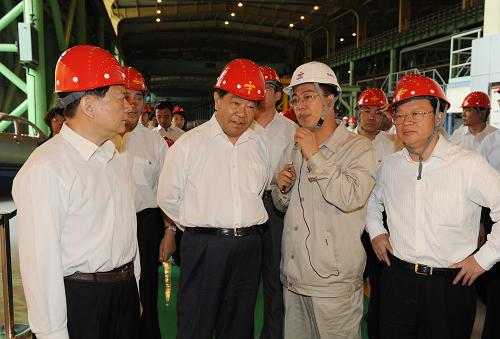 6月11日至15日,中共中央政治局常委、全國(guó)政協(xié)主席賈慶林在遼寧調(diào)研。這是6月13日,賈慶林在鞍山鋼鐵集團(tuán)公司冷軋廠生產(chǎn)線了解生產(chǎn)情況。新華社記者 黃敬文 攝