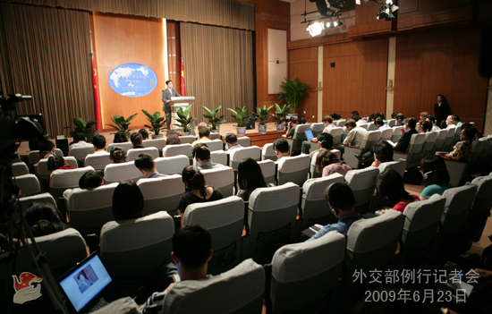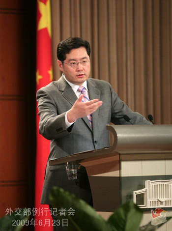 2009年6月23日,外交部發(fā)言人秦剛舉行例行記者會。答問如下: