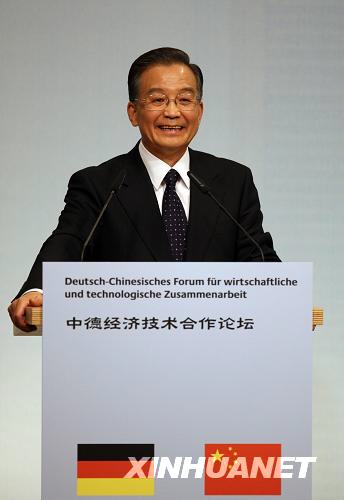 資料圖片:1月29日,中國國務(wù)院總理溫家寶在德國柏林出席第五屆中德經(jīng)濟(jì)技術(shù)合作論壇并發(fā)表演講。新華社記者 姚大偉攝