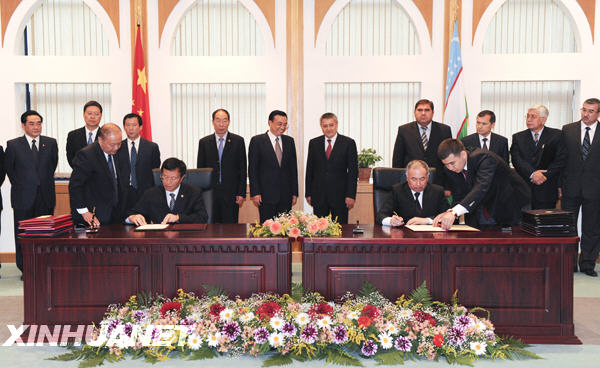6月27日,中國(guó)國(guó)務(wù)院副總理李克強(qiáng)在塔什干與烏茲別克斯坦第一副總理阿齊莫夫舉行會(huì)談。會(huì)談結(jié)束后,李克強(qiáng)與阿齊莫夫共同出席兩國(guó)在能源、經(jīng)貿(mào)、旅游、醫(yī)療等領(lǐng)域11份合作文件的簽字儀式。新華社記者李學(xué)仁攝