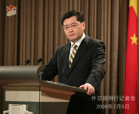 2009年7月9日,外交部發(fā)言人秦剛舉行例行記者會。答問如下: