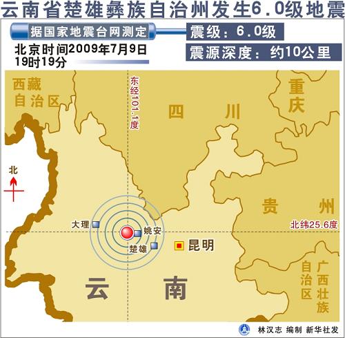 圖表:云南省楚雄彝族自治州發(fā)生6.0級地震。新華社 發(fā)