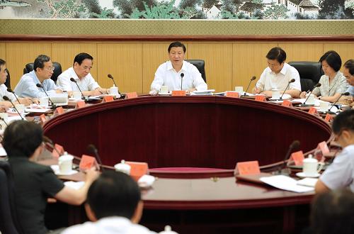 7月21日,中共中央政治局常委、中央書記處書記、國家副主席、中央深入學(xué)習(xí)實(shí)踐科學(xué)發(fā)展觀活動領(lǐng)導(dǎo)小組組長習(xí)近平,主持召開中央深入學(xué)習(xí)實(shí)踐科學(xué)發(fā)展觀活動領(lǐng)導(dǎo)小組第九次會議并講話。新華社記者 馬占成 攝