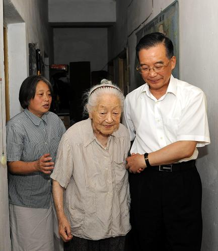 這是溫家寶看望核物理學(xué)家何澤慧。新華社記者 李學(xué)仁 攝