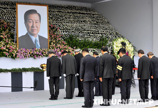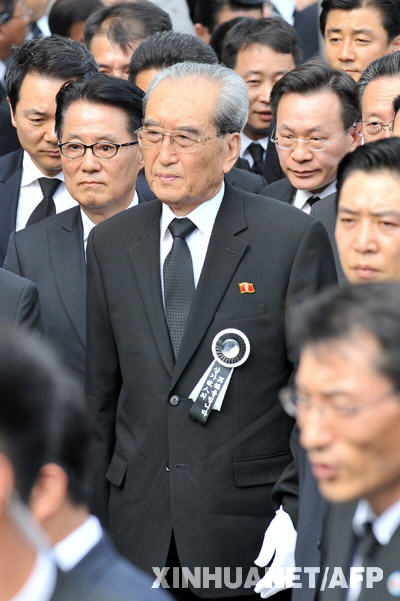 8月21日,在韓國首都首爾設(shè)在國會的已故前總統(tǒng)金大中的正式靈堂,由朝鮮勞動黨中央書記金己男率領(lǐng)的朝鮮吊唁團吊唁韓國前總統(tǒng)金大中。新華社/法新