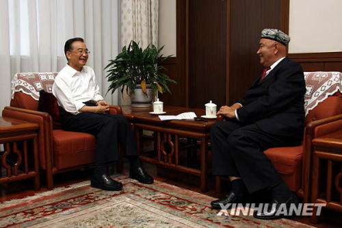 9月14日,國(guó)務(wù)院總理溫家寶在北京中南海總理辦公室與新疆維吾爾族農(nóng)民達(dá)吾提·阿西木會(huì)面。新華社記者姚大偉攝