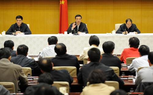 10月9日,中共中央政治局常委、國務(wù)院副總理李克強(qiáng)在北京出席全國糧食清倉查庫工作總結(jié)電視電話會(huì)議并講話。新華社記者 劉建生 攝