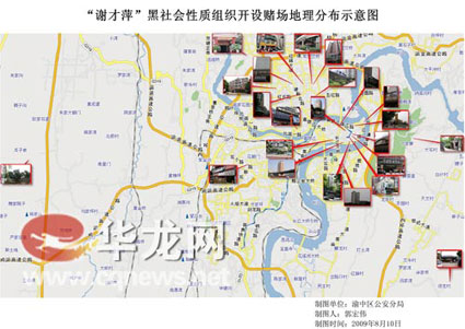 謝才萍設(shè)置的賭場(chǎng)分布圖 市公安局供圖 華龍網(wǎng)發(fā)