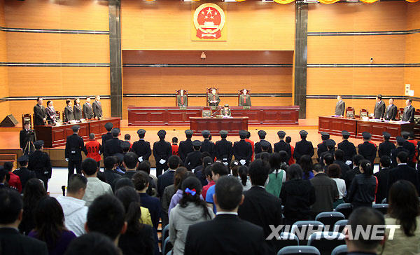 10月21日,重慶“打黑大審判”第一案宣判。圖為宣判現(xiàn)場。新華社發(fā)