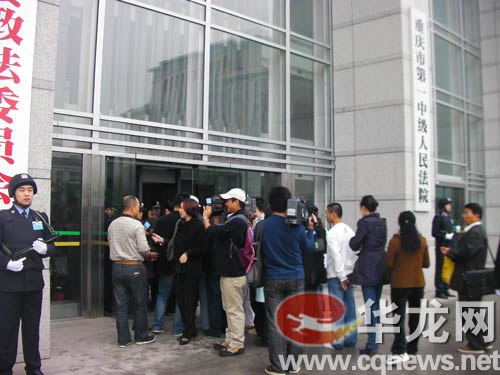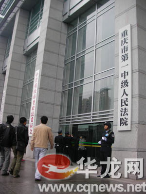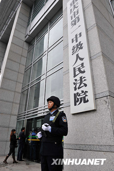 10月21日上午,法警持槍在重慶市第一中級人民法院門口執(zhí)勤。新華社發(fā)