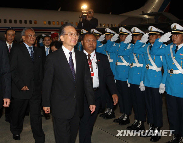 新華網(wǎng)泰國華欣10月23日電(記者張秋來 馮堅)應泰國總理阿披實邀請,國務院總理溫家寶當?shù)貢r間23日晚乘專機抵達泰國華欣,出席東亞領(lǐng)導人系列會議。