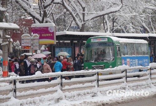 從11月9日至11日,山西大部地區(qū)出現(xiàn)強(qiáng)降雪天氣,太原24小時(shí)降雪量達(dá)36.7毫米,是1951年有氣象記錄以來的最大降雪。山西省氣象局啟動(dòng)暴雪災(zāi)害一級(jí)應(yīng)急響應(yīng),山西省副省長(zhǎng)劉維佳表示:此次暴雪災(zāi)害給山西的交通、農(nóng)業(yè)、林業(yè)、電力等相關(guān)部門造成了不同程度的影響。圖為太原市居民出行受暴雪的影響,只能選擇步行或乘坐公交汽車。 中新社發(fā) 張雷杰 攝