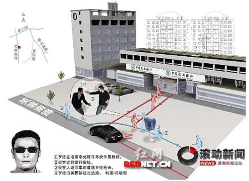 據(jù)警方發(fā)布的消息稱,犯罪嫌疑人為男性,40歲左右,身高約1.70米,中等體態(tài),較結(jié)實,皮膚較黑,行走時腰桿挺直,作案時利用墨鏡、帽子作偽裝,穿深色衣服,深色褲子,著裝不講究。請廣大群眾結(jié)合公安機(jī)關(guān)公布的視頻錄像和模擬畫像進(jìn)行辨認(rèn),如有知情者,請速撥打“110”電話或與長沙市公安局刑偵支隊聯(lián)系,聯(lián)系人洪警官:0731-85010202、13574849110。對提供重要線索抓獲犯罪嫌疑人或直接抓獲犯罪嫌疑人的,公安機(jī)關(guān)將獎勵人民幣20萬元。