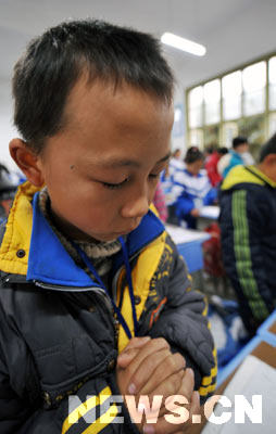 12月8日,事發(fā)學(xué)校的一名學(xué)生在上課前為死難同學(xué)默哀。新華社記者 趙眾志 攝 資料圖