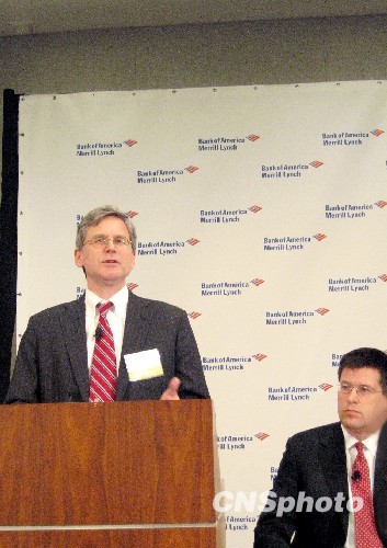 美國(guó)銀行/美林公司14日宣布其全球經(jīng)濟(jì)研究結(jié)果稱,全球經(jīng)濟(jì)在2010年將開始“緩慢而穩(wěn)定”的復(fù)蘇。圖為美國(guó)銀行北美首席經(jīng)濟(jì)學(xué)家伊!す锼梗ㄗ螅┰诎l(fā)布會(huì)上。 中新社發(fā) 魏晞 攝