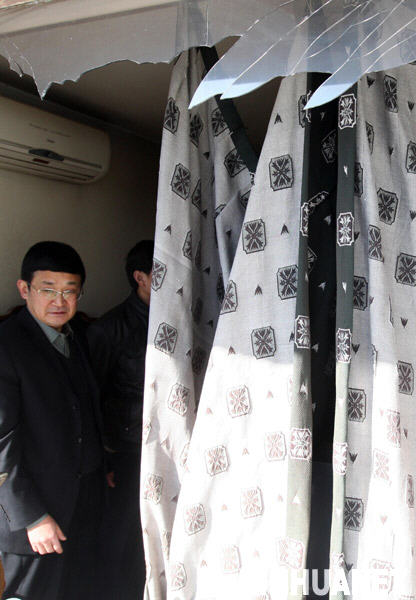 爆炸現(xiàn)場就離我們新華社喀布爾分社30多米,當時我們都在辦公室工作,突然一聲震天巨響,玻璃全部震碎。我透過窗戶,我看見有一團黑色的濃煙向天上沖去。我立即趕往現(xiàn)場,看到有幾輛汽車嚴重損毀,其中有一輛越野車被翻轉(zhuǎn),還在燃燒,可以看到車的前排有一個被炸死的人,趕到現(xiàn)場的救護車正在搶救受傷的人,警察已經(jīng)把現(xiàn)場全部封鎖了。