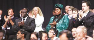 氣候大會結(jié)束后,疲憊的代表們鼓掌歡迎。