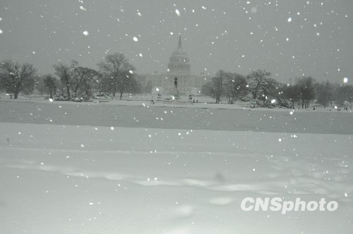 當?shù)貢r間12月19日,美國東海岸廣大地區(qū)遭受暴風雪襲擊,圖為當日大雪紛飛中的美國華盛頓國會山。美國國家氣象局預測,包括華盛頓、巴爾的摩、費城和紐約在內(nèi)的東海岸中部地區(qū)積雪將達五十厘米。氣象專家稱,華盛頓的大雪或許是自一九三二年以來十二月的歷史性最大降雪。 中新社發(fā) 吳慶才 攝