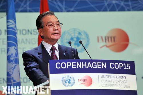 12月18日,中國國務(wù)院總理溫家寶在哥本哈根出席聯(lián)合國氣候變化大會(huì)領(lǐng)導(dǎo)人會(huì)議。這是溫家寶在會(huì)上發(fā)表講話。新華社記者武巍攝