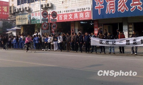 11月8日,鳳陽各界群眾為小崗村黨委書記沈浩送行。“中國農(nóng)村改革第一村”安徽鳳陽縣小崗村黨委書記沈浩11月6日在小崗村臨時租住房內(nèi)去世,年僅46歲。8日鳳陽縣各界群眾特別是小崗村村民沉浸在悲痛中為沈浩出殯。 中新社發(fā) 金鳳 攝